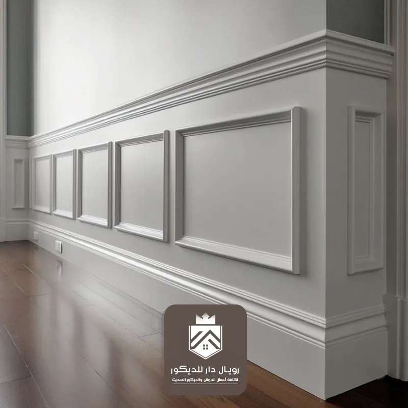- بعد ذلك مع كورنيش الفوم: تُوضع أسفل الكورنيش مباشرةً لخلق إطار بصري متسلسل، ويفضل اختيار نمط منقوش من الفايبر يُكمل نمط الفوم الزخرفي للتجانس.
