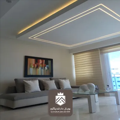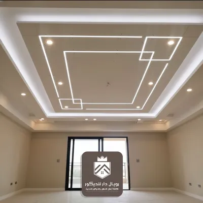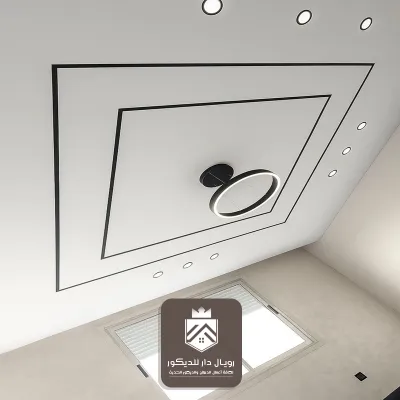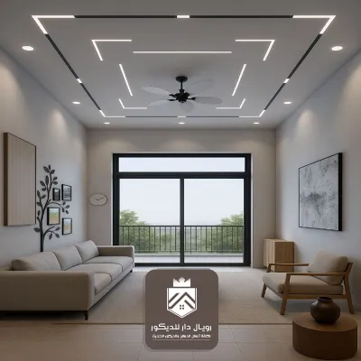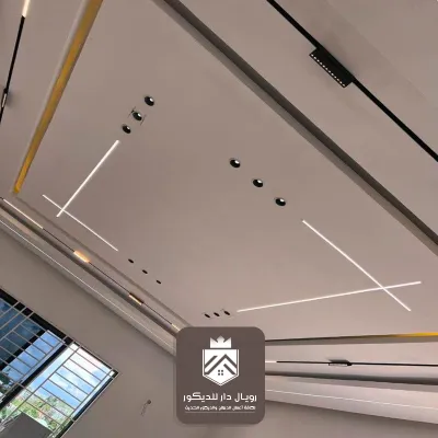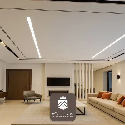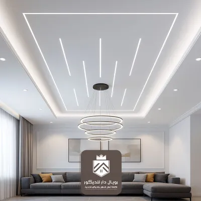 بإطارات فخمة وتفاصيل ناعمة تناسب الصالات الواسعة. - السقف المودرن بخطوط مستقيمة: