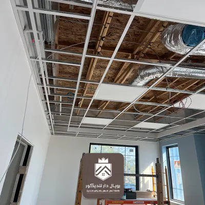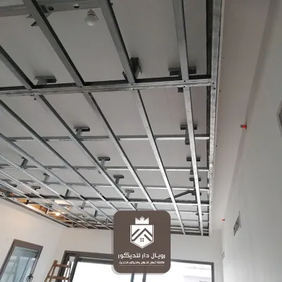 يتم تركيب هيكل معدني مُثبت بالسقف الأصلي، ثم تُثبت عليه ألواح الجبس أو الألمنيوم بدقة، بعدها تأتي مرحلة المعالجة والدهان أو تركيب الإضاءة المخفية حسب التصميم.